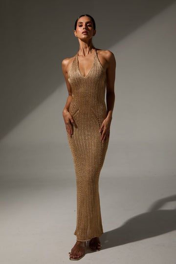 Nuestro Lía Dress es un vestido maxi tejido artesanalmente, Su textura abierta crea un equilibrio...
