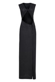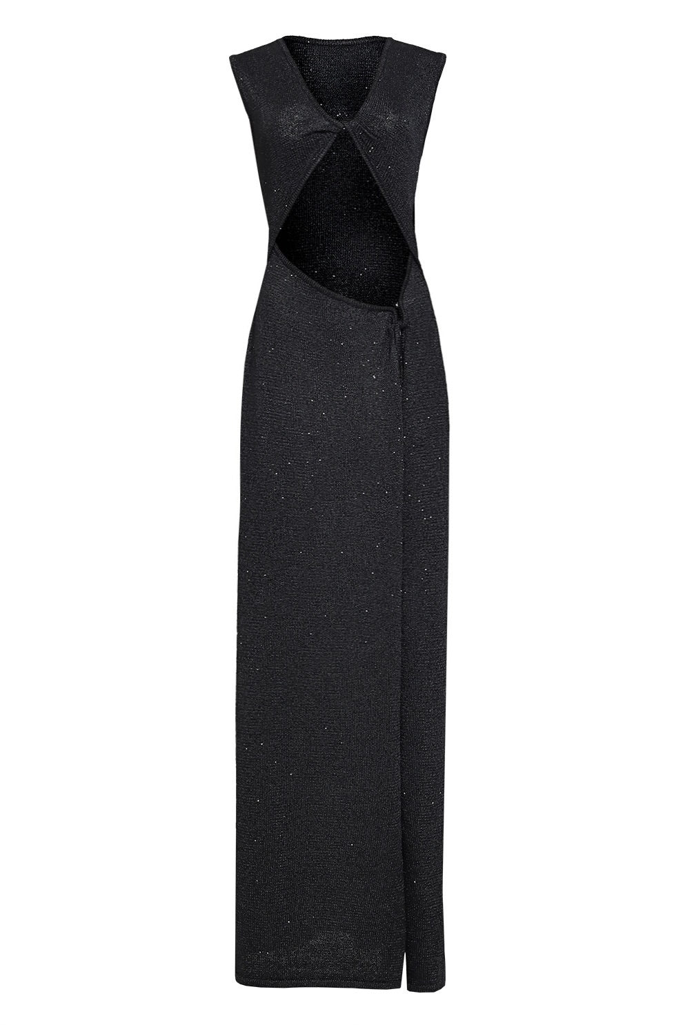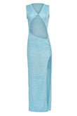 Nuestro BAIE DRESS evoca el deseo de los días dorados. Tejido a mano con hilos metálicos que capturan la luz, este vestido maxi abraza el cuerpo con un corte asimétrico que revela la piel con sensualidad natural. El nudo frontal enmarca la figura, mientras la abertura lateral invita al viento a jugar.