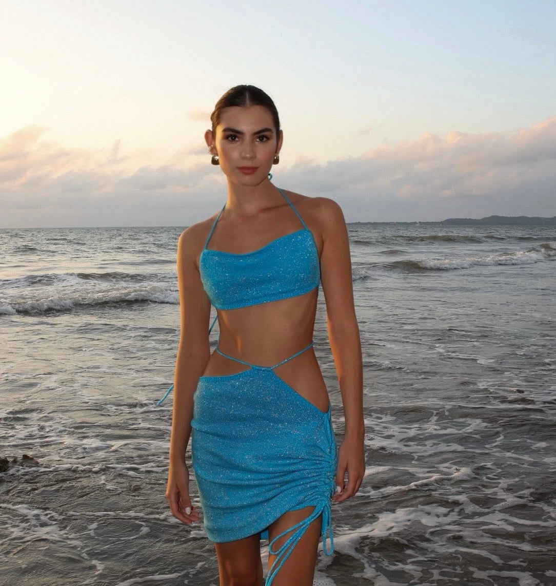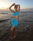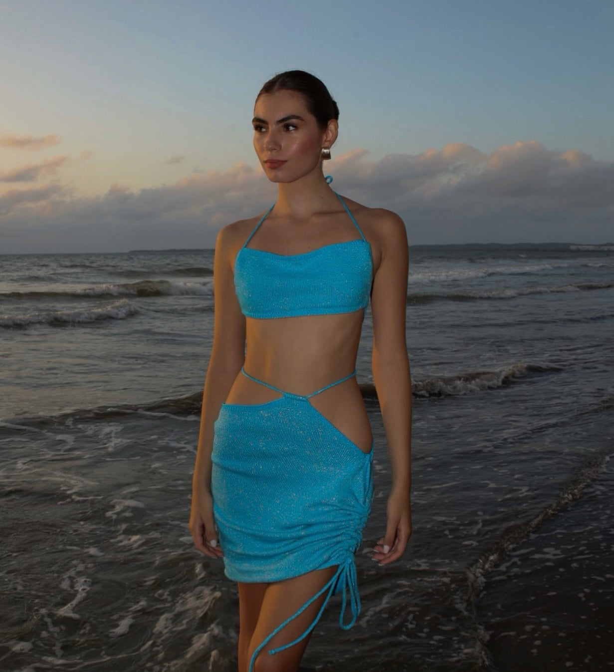 ¡Haz la transición al verano con nuestro conjunto de falda verde Gioia! Este conjunto de falda elástica viene con un moderno top corto que cuenta con ajustables.
