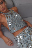 Nuestro Shimmer Set es un tributo a las noches llenas de movimiento y brillo. Este conjunto tejido a mano combina un diseño elegante con un toque moderno de las lentejuelas, que capturan y reflejan la luz con cada paso que das.