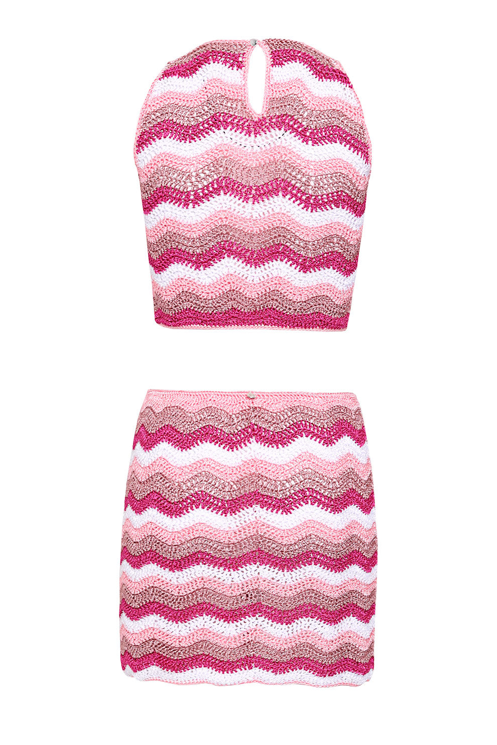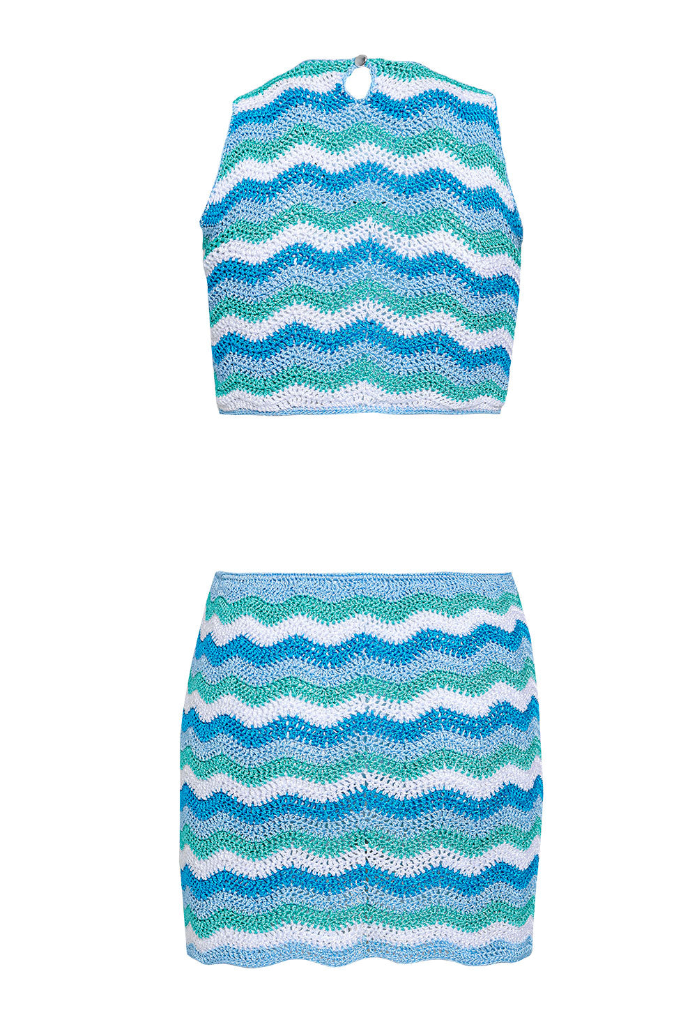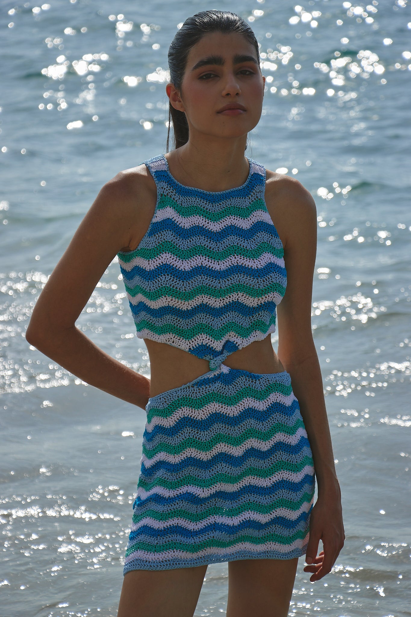 Tejido a mano con puntos en zigzag que evocan la energia del mar, este diseño abraza la figura con sensualidad y frescura. un balance entre lo atrevido y lo elegante.