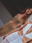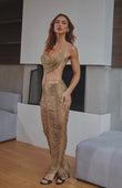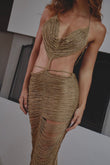 Nuestro Euphoria dress esta diseñado para brillar, realizado en hilo dorado con lurex, detalles en caídas elegantes que moldean la figura, este vestido combina la sensualidad y sofisticación. Una pieza que te hará destacar con cada movimiento, reflejando el espíritu de nuestra colección.